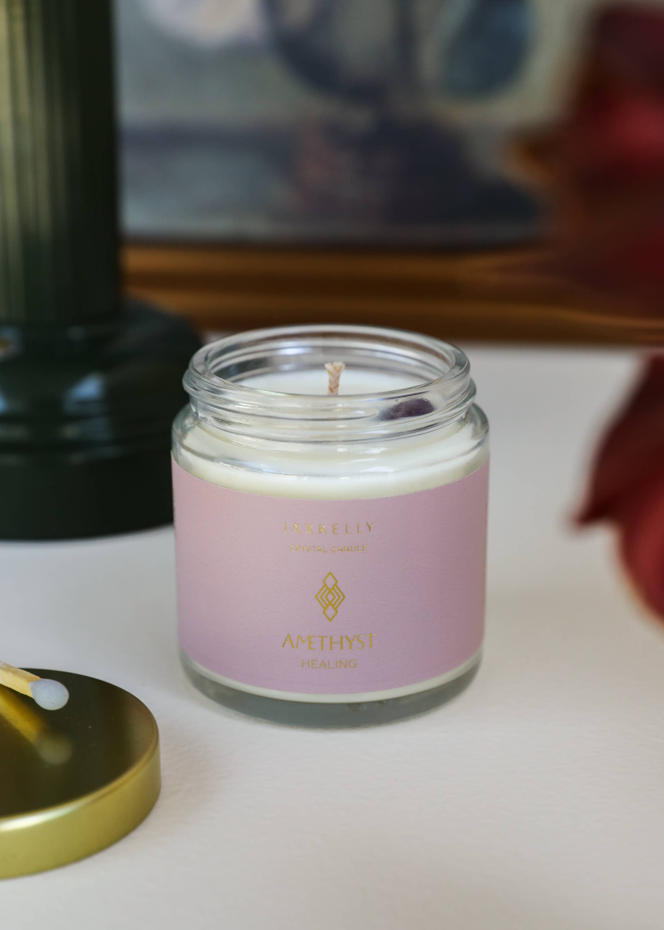 This soothing scent is the perfect mix of amber and sandalwood. Made with a genuine Amethyst crystal nested inside the candle, adding a little more meaning to your candle experience.
