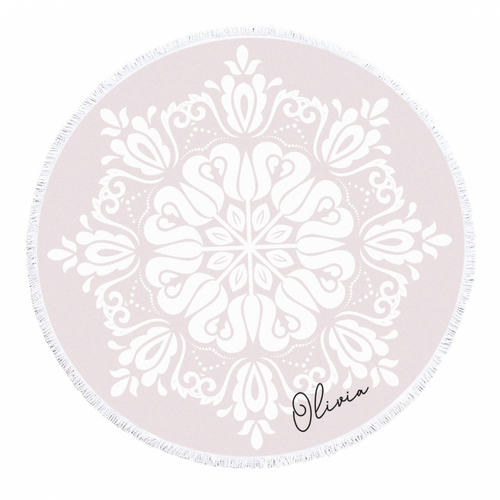 Boho round towels are a cute gift idea for lounging around the pool at your bachelorette party weekend. Each round towel comes with a pretty boho pattern printed on a mauve background and includes a pretty white fringe trim.Can be personalized with a custom name.