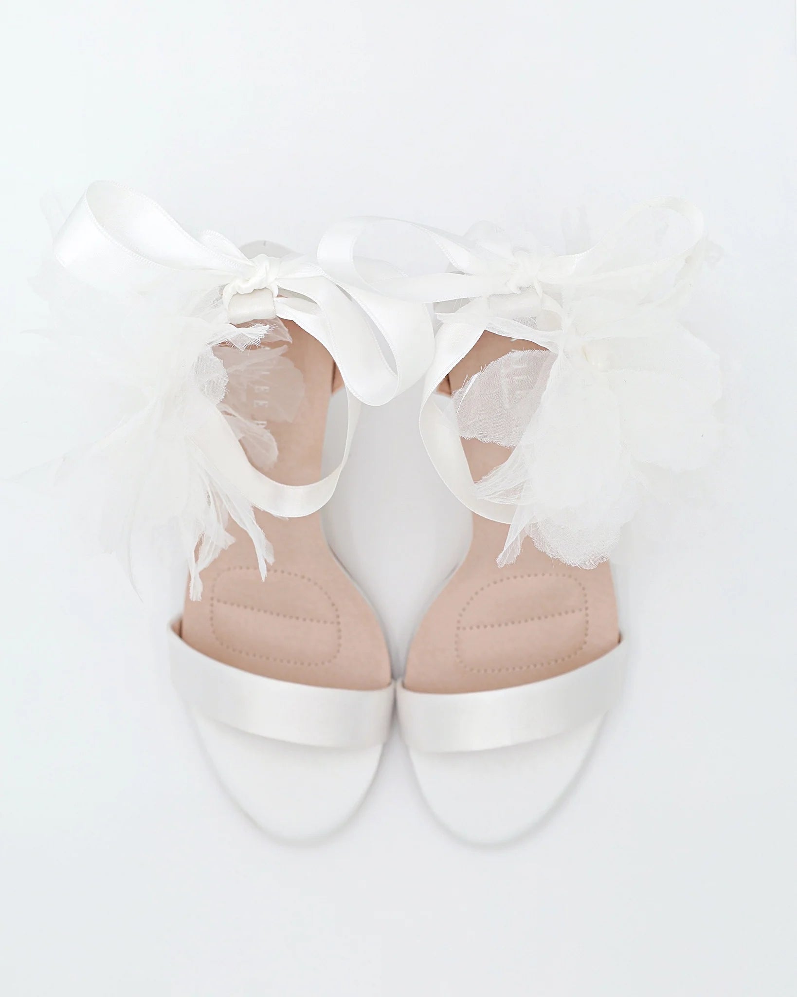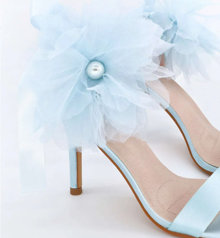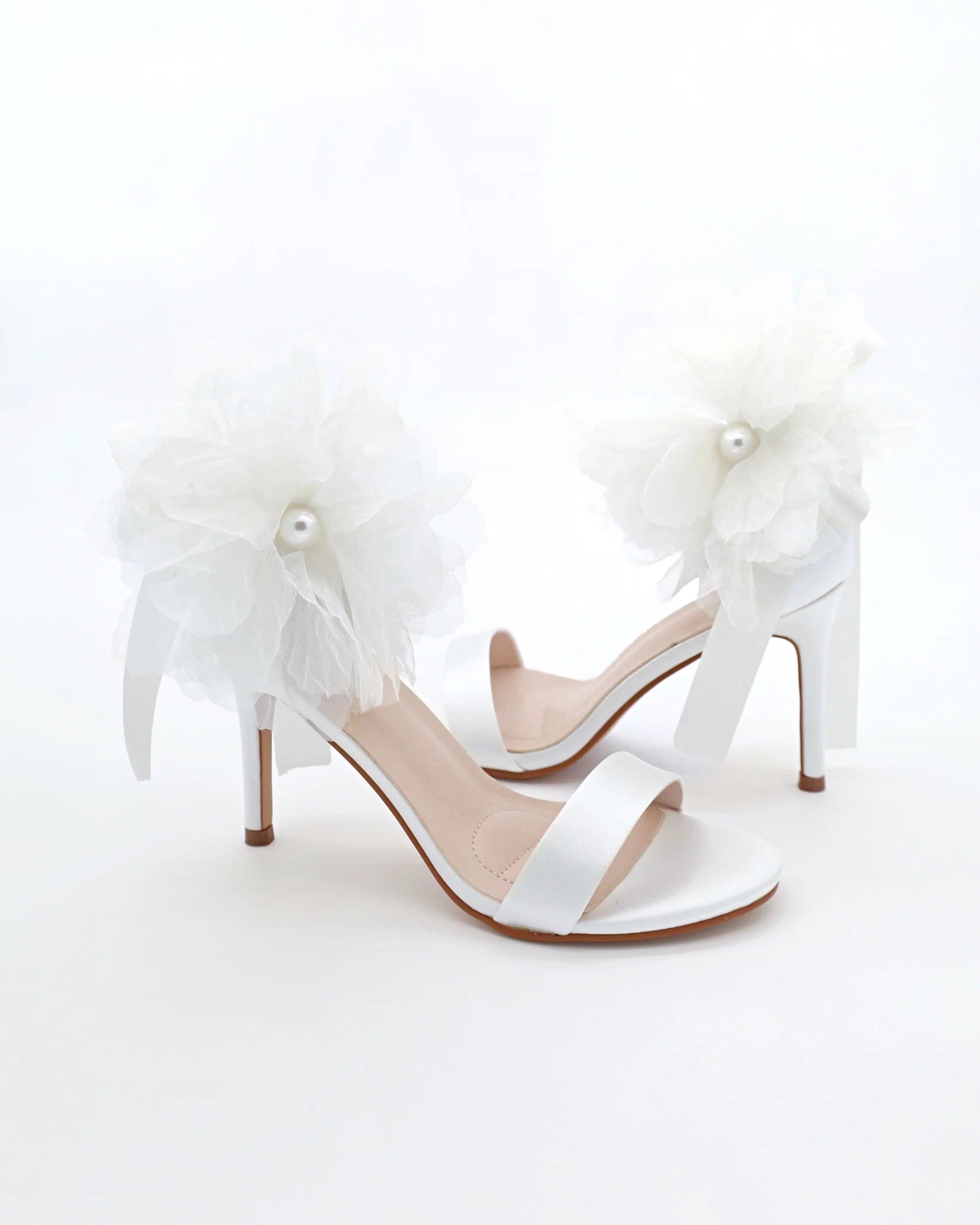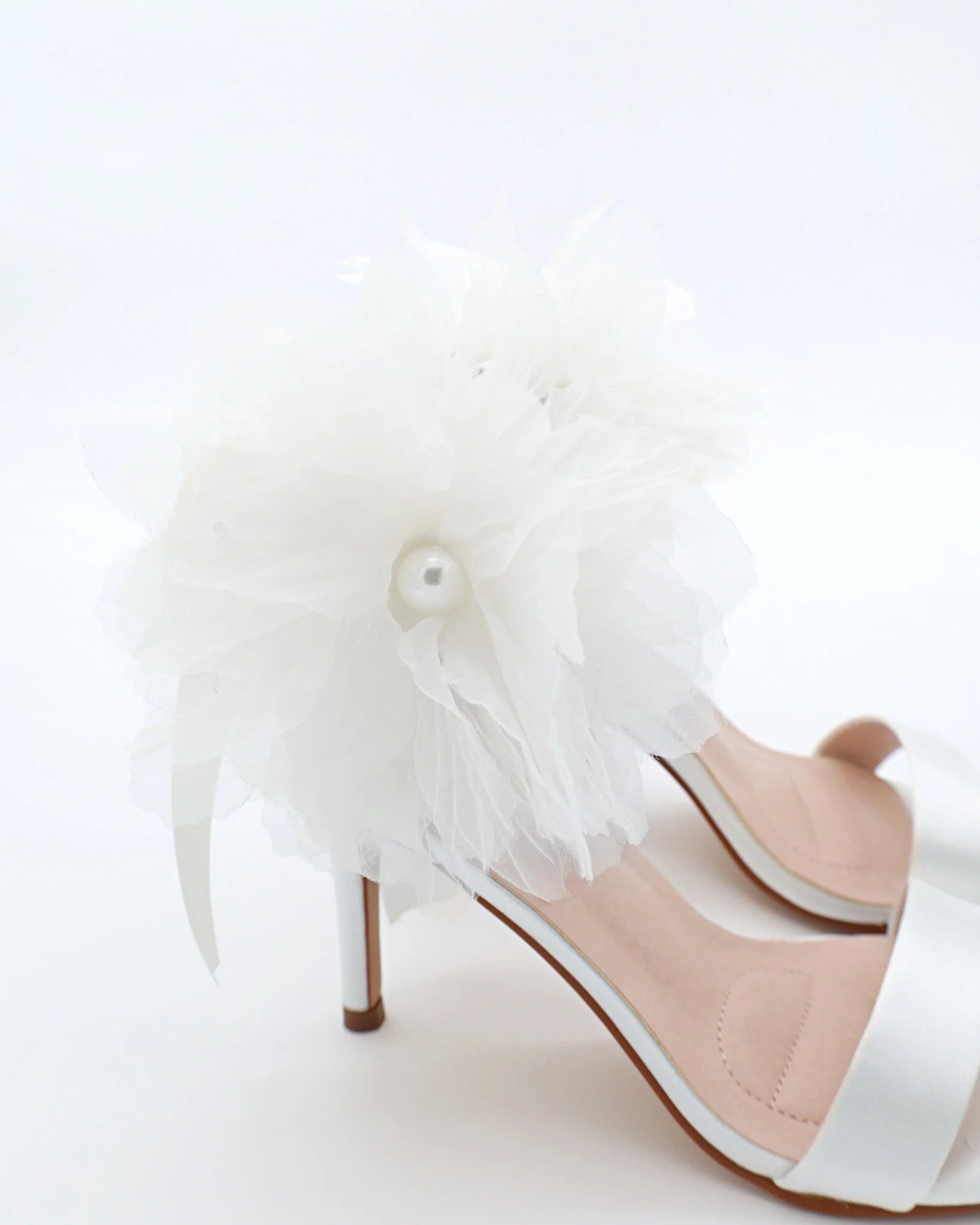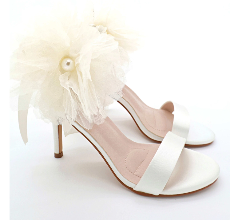 Adorned with delicate organza Ophelia flowers, it creates a timeless elegance, making them a must-have for any wardrobe. Perfect for brides, bridesmaids, and for a variety of occasions, from weddings, casual outings to formal events, these shoes seamlessly elevate any outfit.